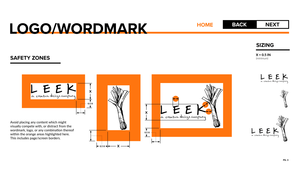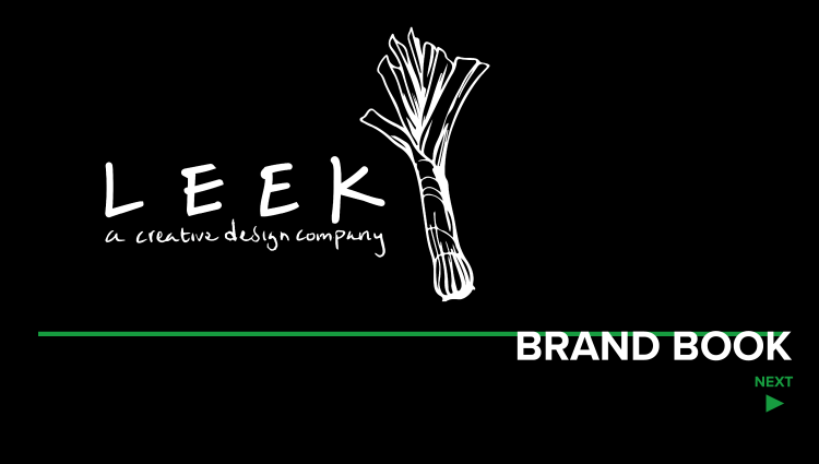 The task here was to develop a clear and concise set of guidelines around how the Leek Productions brand should be represented visually. I established rules regarding logo sizing and placement, colour selection and usage, typeface and font usage, and layout/composition guidelines. Having this guide empowers the client to create on-brand, consistent and attractive visuals independently. The brand book itself also serves of an example of the brand guidelines in use. The brand book also features interactive navigation functionality for ease and efficiency of use.